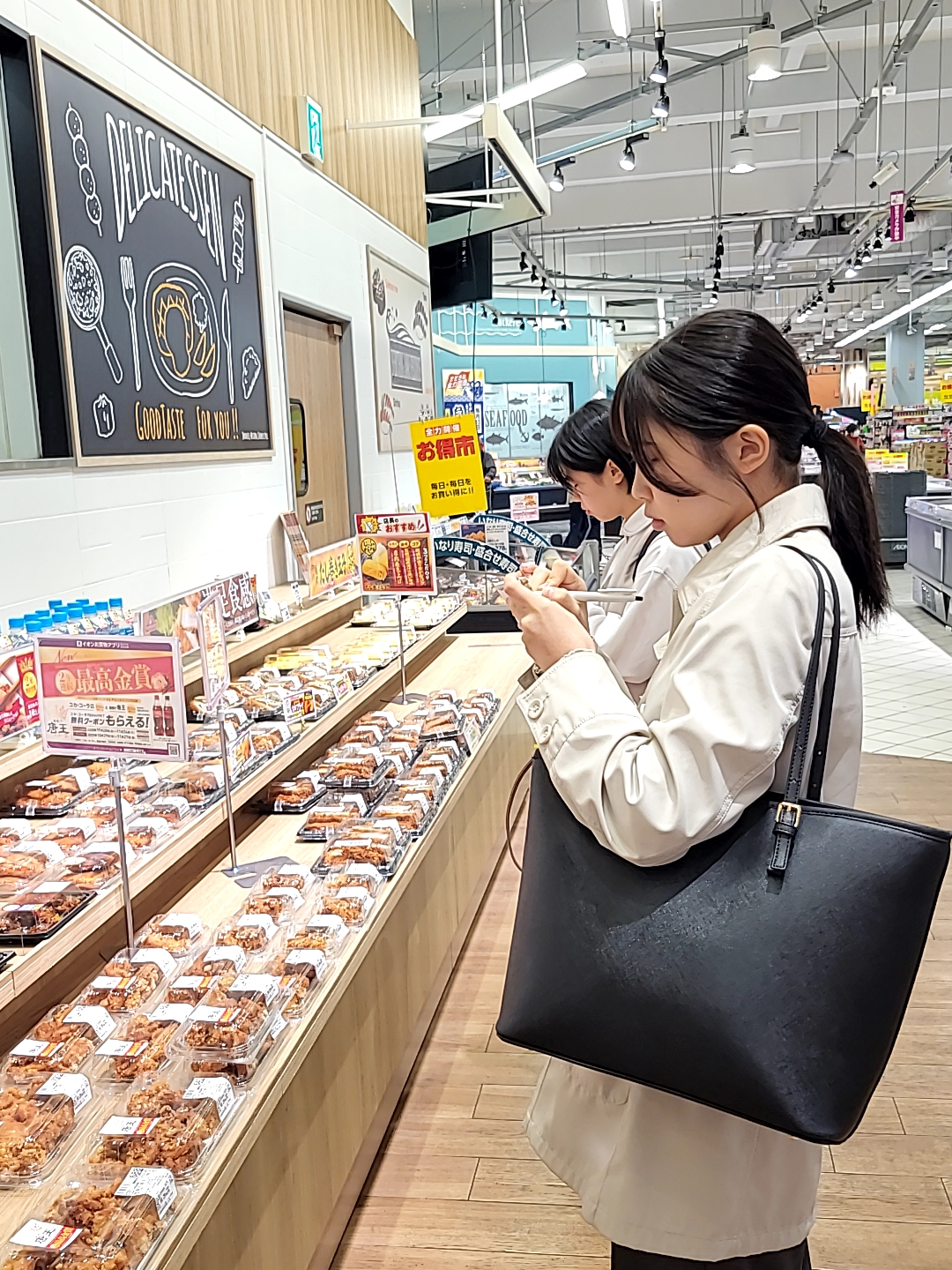 次に、近所の7つのスーパーに足を運び、どのような商品が売られているのかを調査しました。また、目を惹くようなPOPはどんな構造でキャッチコピーはどのような言葉が使われているのかなどを観察しました。POPの作り方で集客力が変わると思ったので、販促活動がいかに大事かということを実感しました。