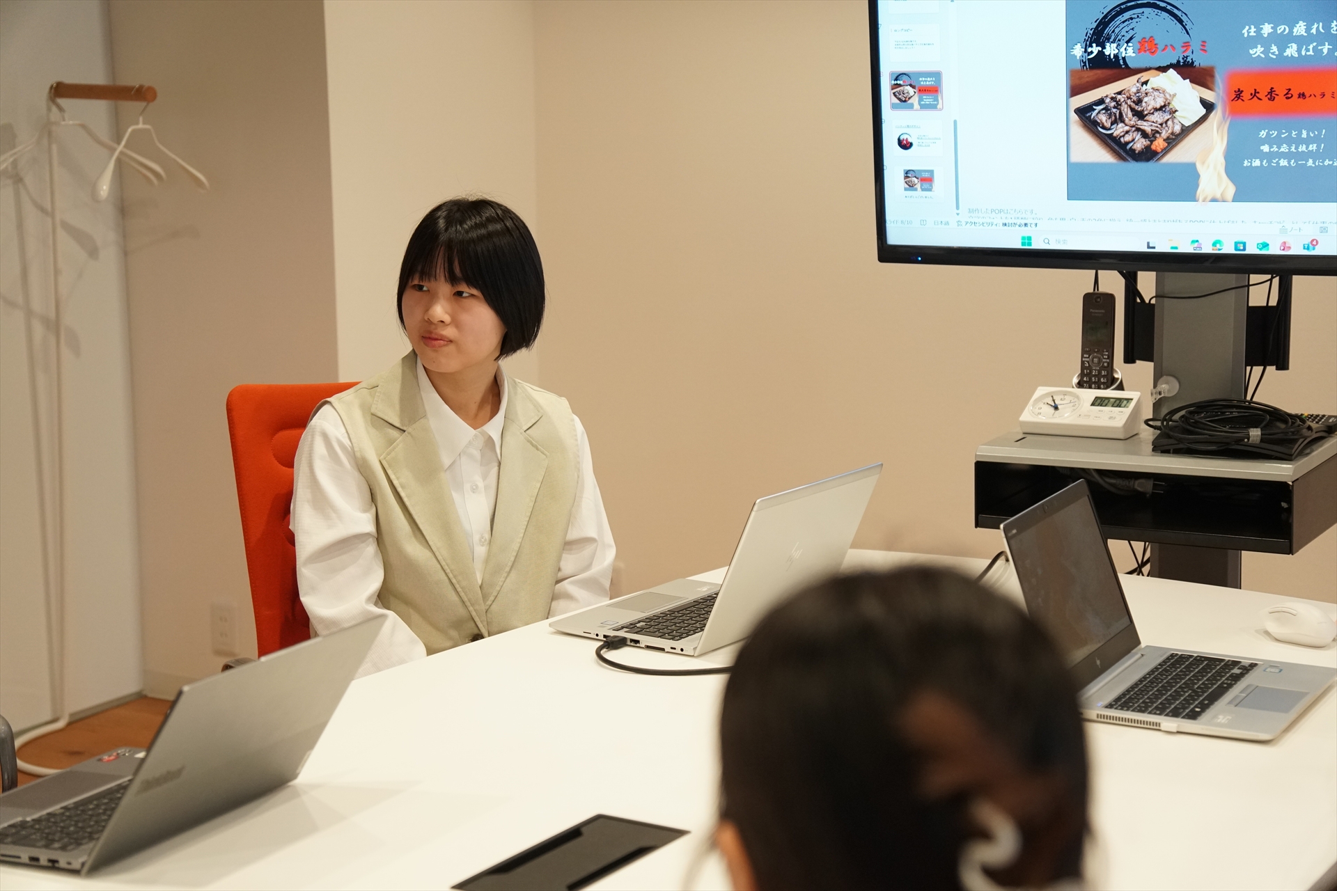最終日には制作したPOPと新商品案のプレゼンを行いました。5日間の中でこのプレゼンが一番緊張しました。たくさんの社員さんの前で発表するのは、中々ない機会なのでとても良い経験になりました。また、社員のみなさんから意見や改善点をいただくことでき、今後のプレゼンの場で活かしていきたいです。