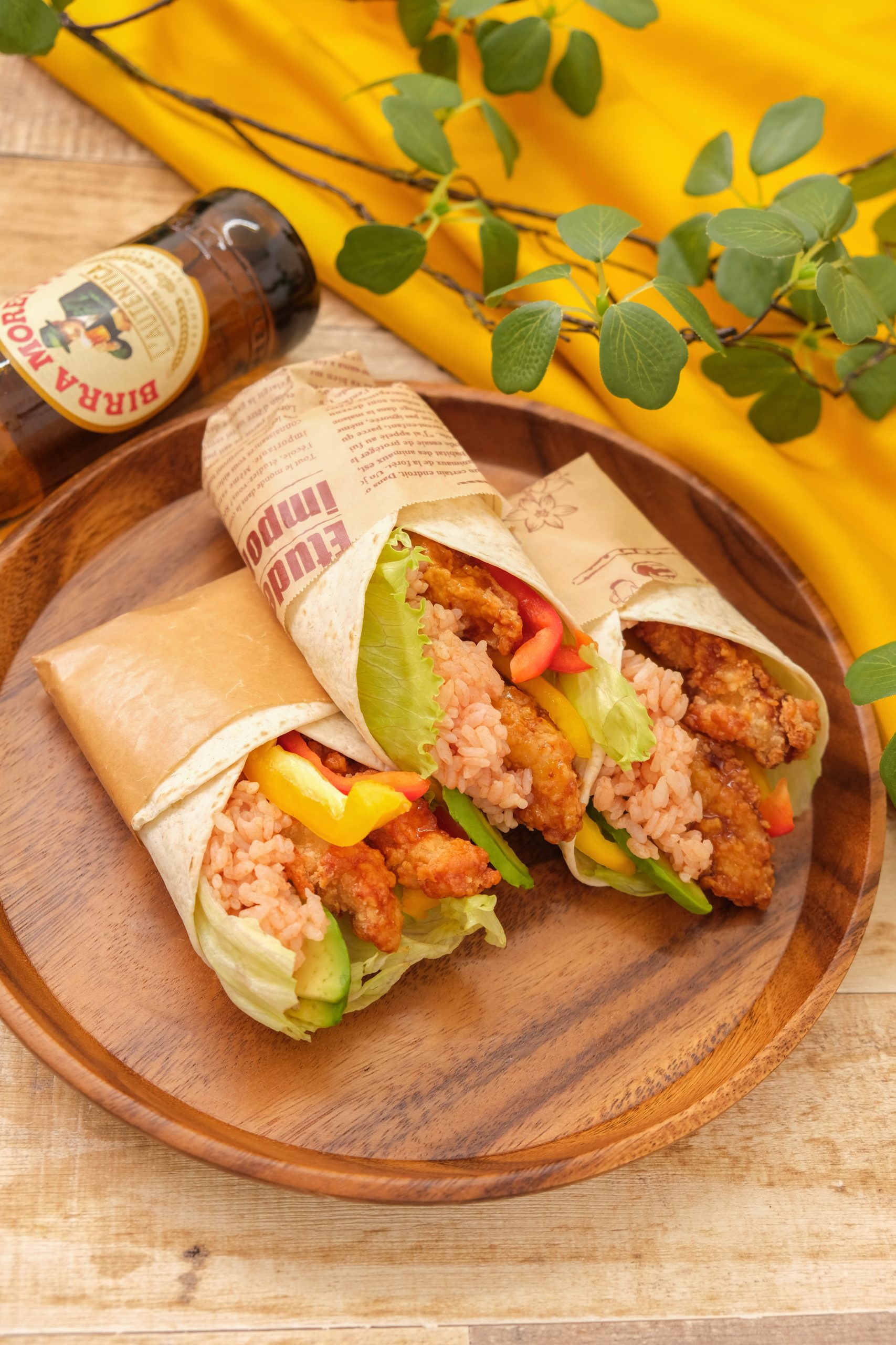次に、クックパッドのメニュー考案を行いました。「サクッとスティックチキン」を使ってカラフルで彩りが良いパーティーメニューを作りました。メニュー名は「サクッと!カラフルブリトーパーティーメニュー」です!トルティーヤ生地の中にケチャップご飯入れるというアイデアが味のアクセントになり、結果的に成功したのでとてもうれしかったです。