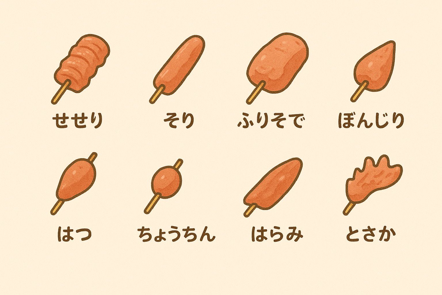 焼き鳥って、同じ鶏でも部位によって味や食感がまったく違うんです。
