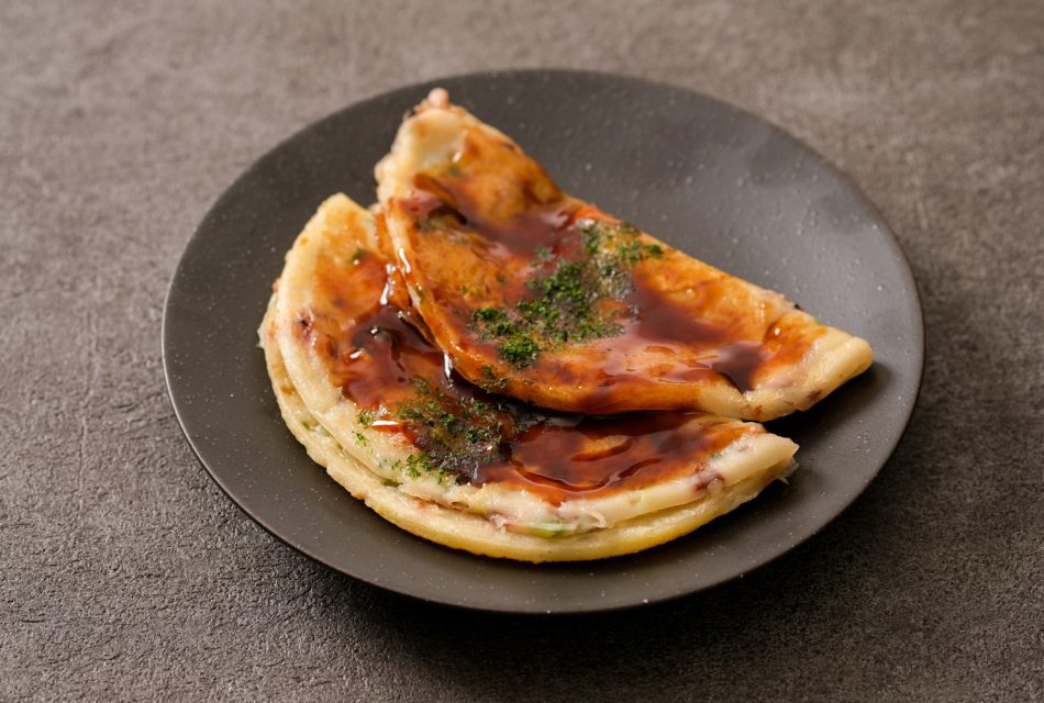 たこや青ねぎが入ったいか焼きにソースを入れて仕上げました。