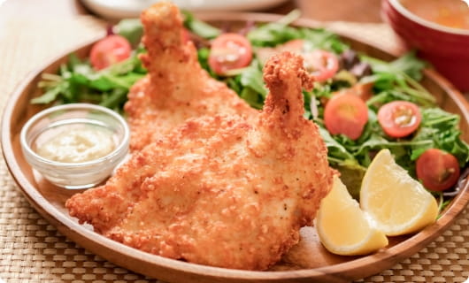 唐揚げやフライドチキン、焼き鳥など様々な鶏肉加工品を取り揃えています。弊社の看板商品のサクうまチキンでは、ジューシーな手羽元と柔らかな胸肉を同時に味わうことができます。焼き鳥シリーズでは、炭火で1本ずつ丁寧に焼き上げているので、本格的な香りや味をお楽しみいただけます。